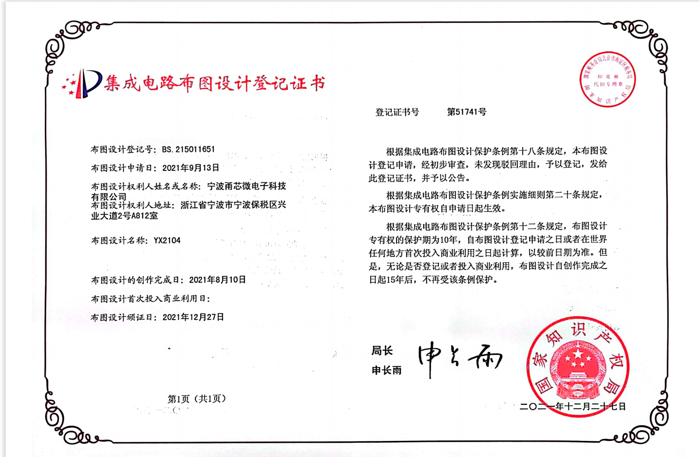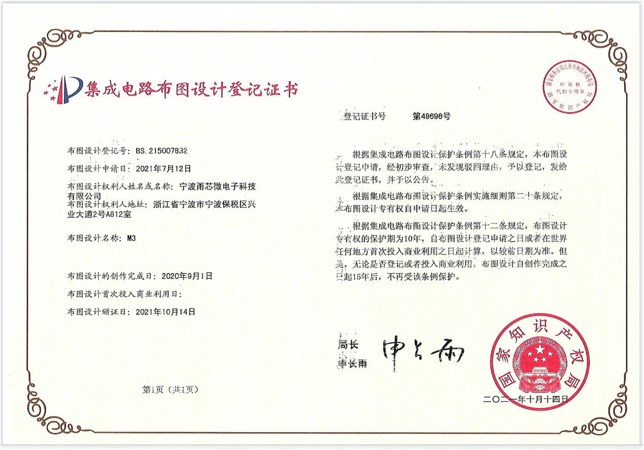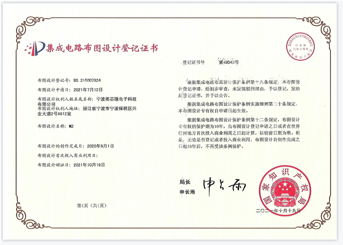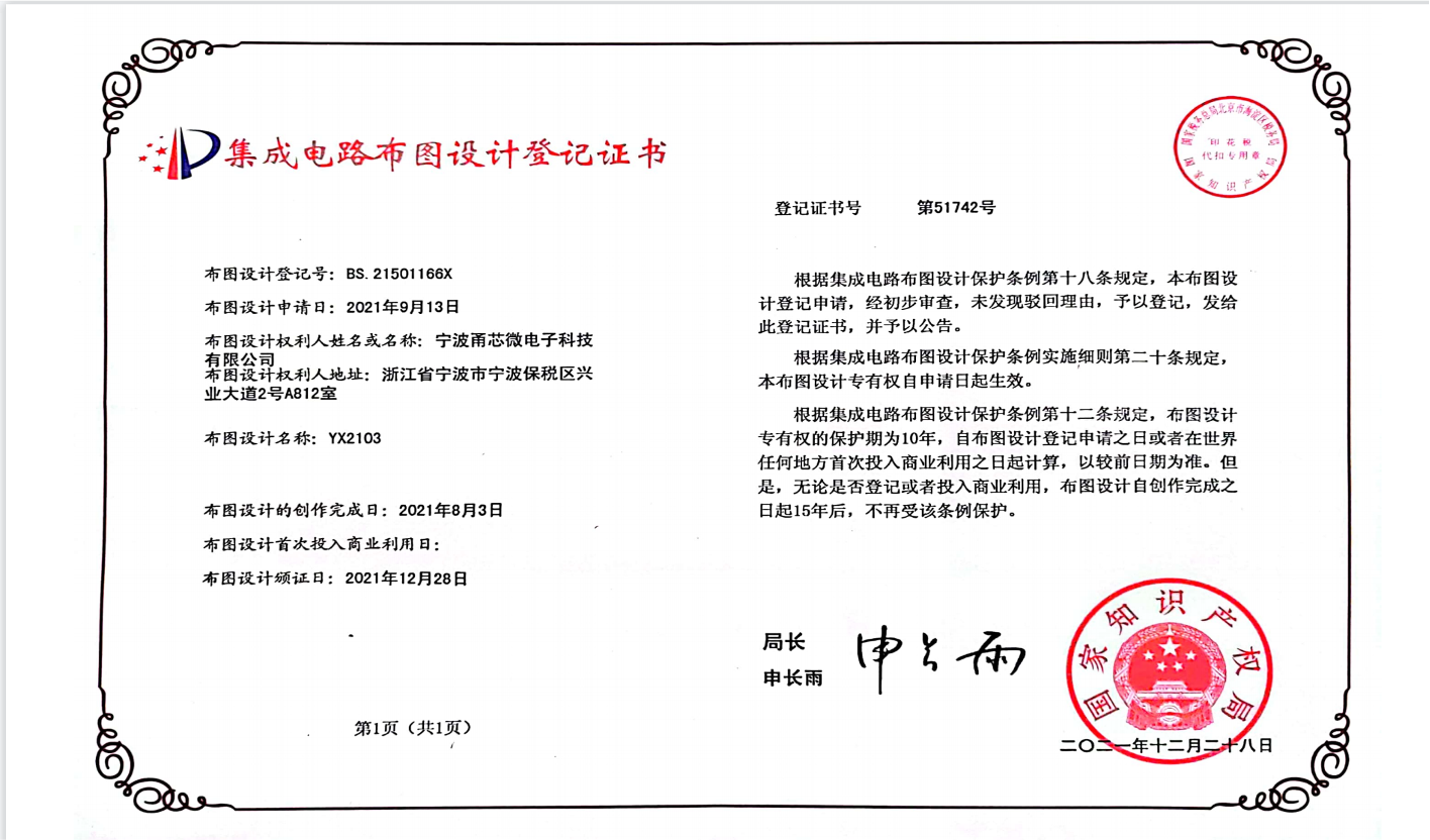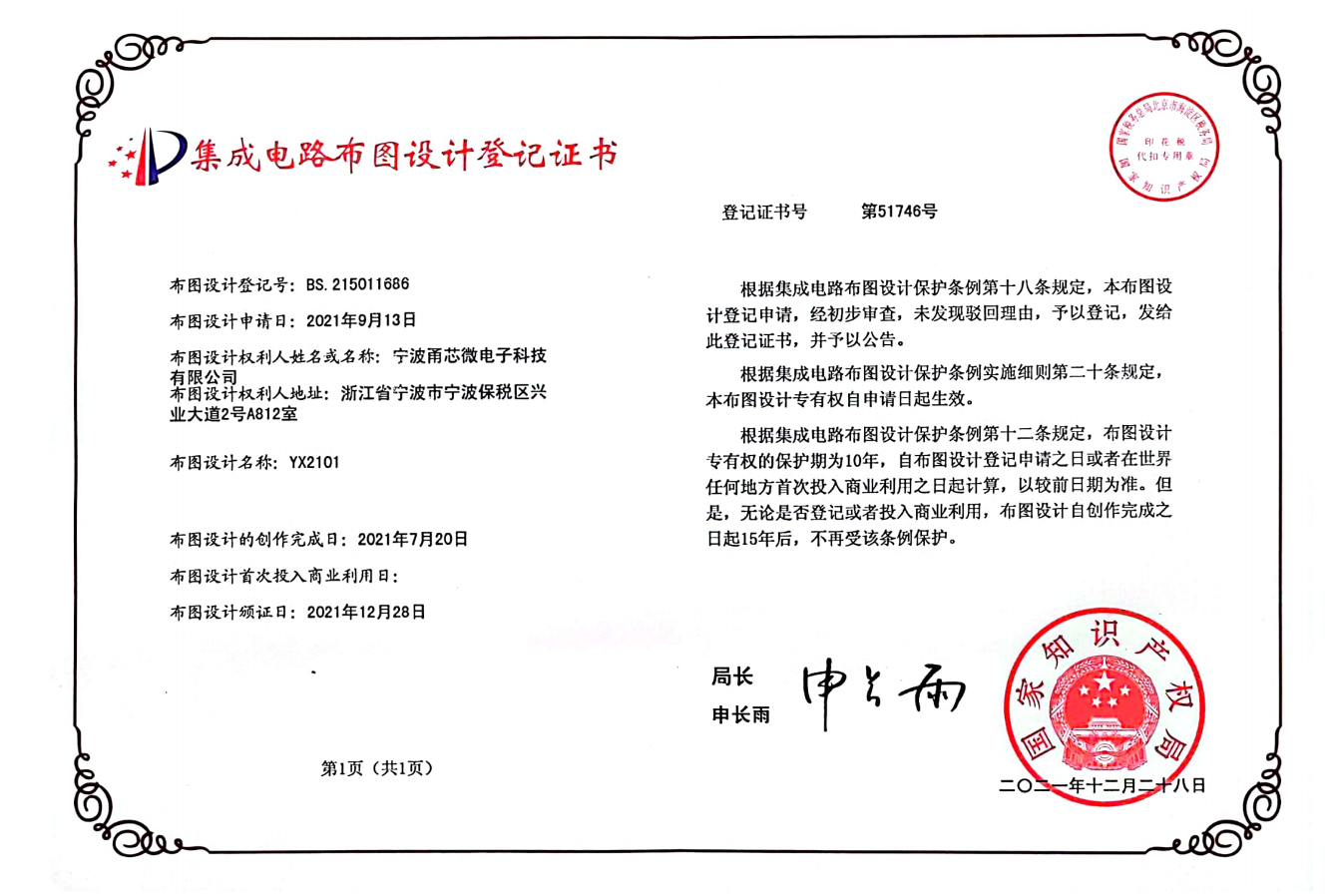 公司现有集成电路布图专利23项(M1-M7;YX2101-YX2104;M14-M24);发明专利1项。