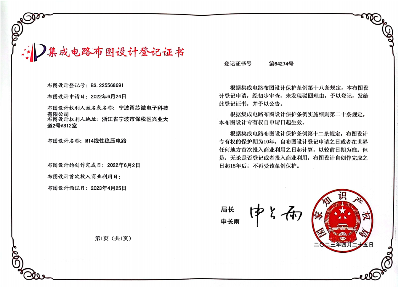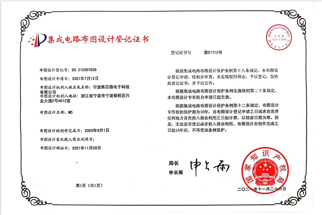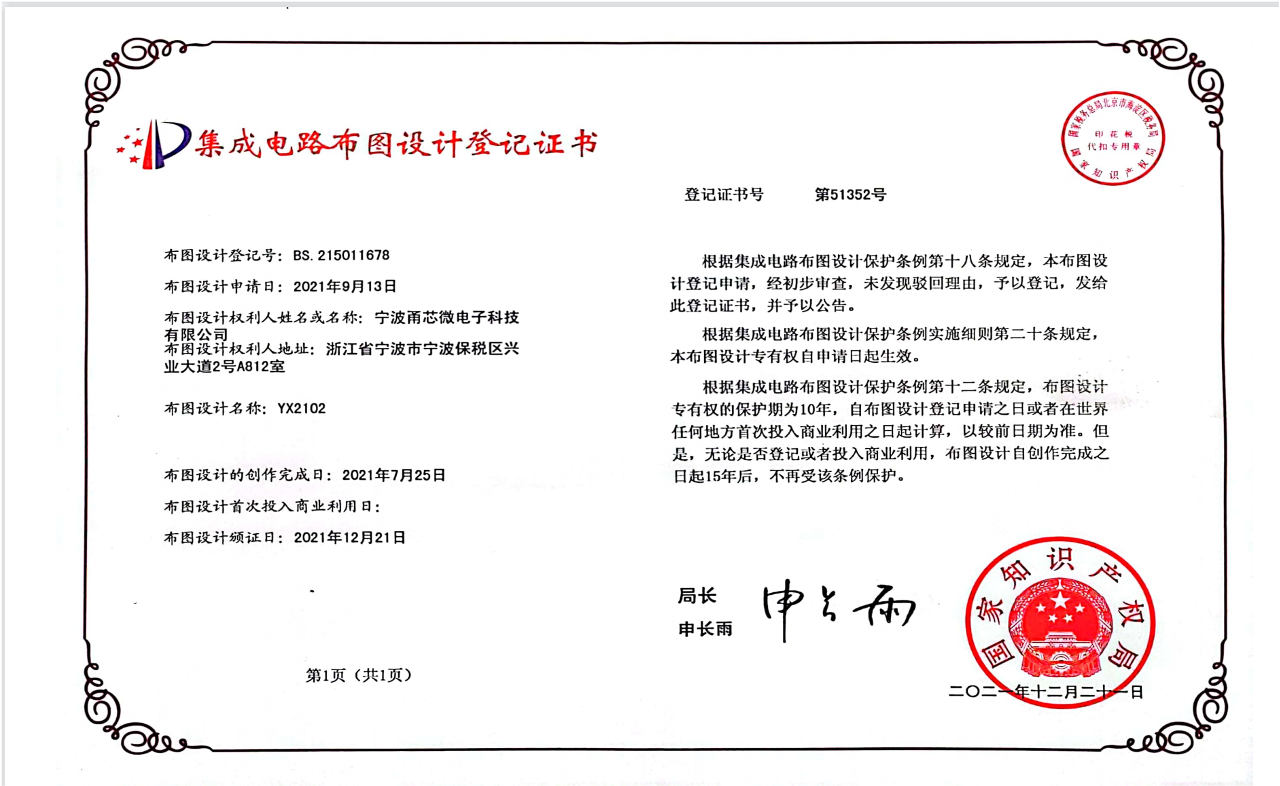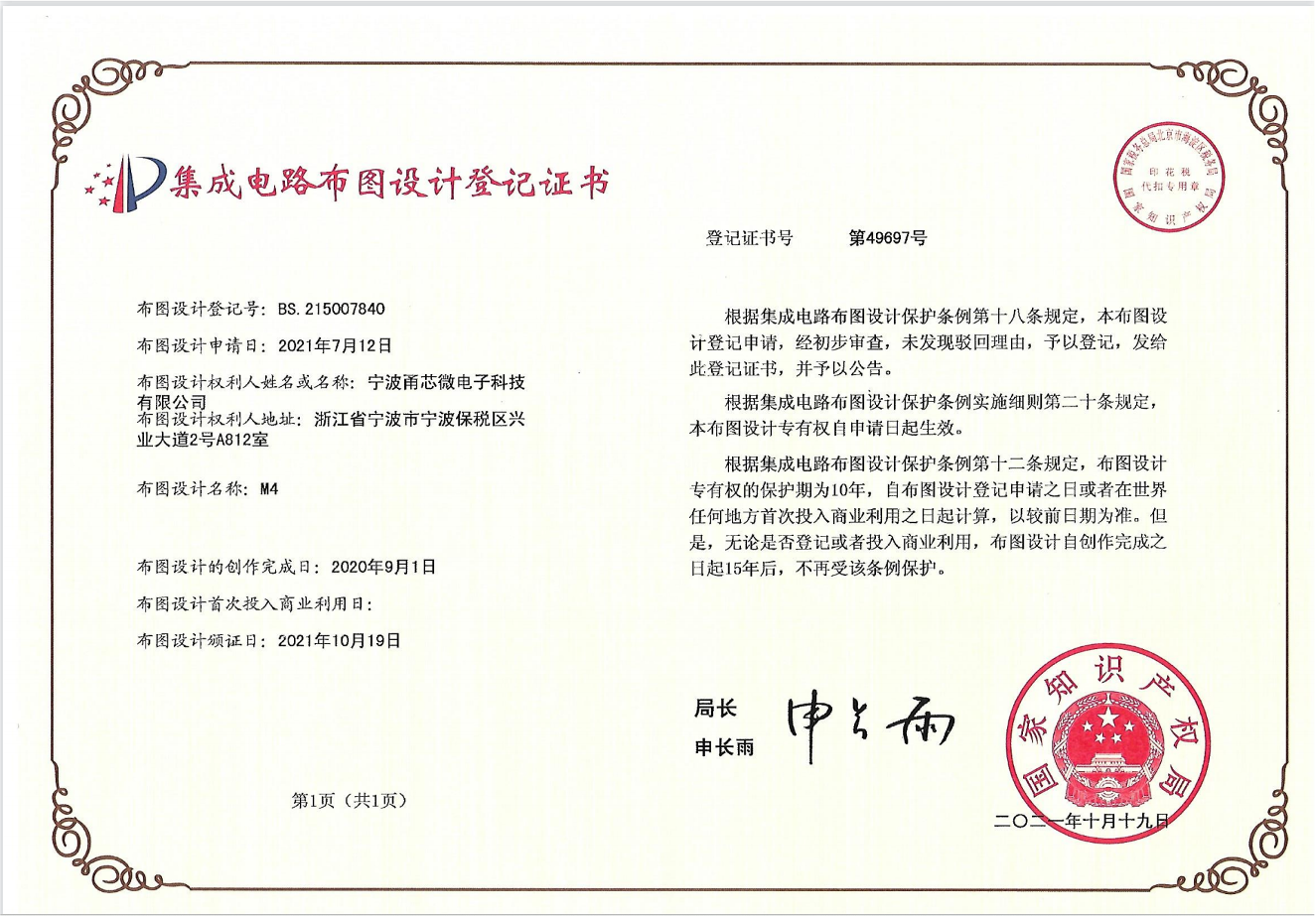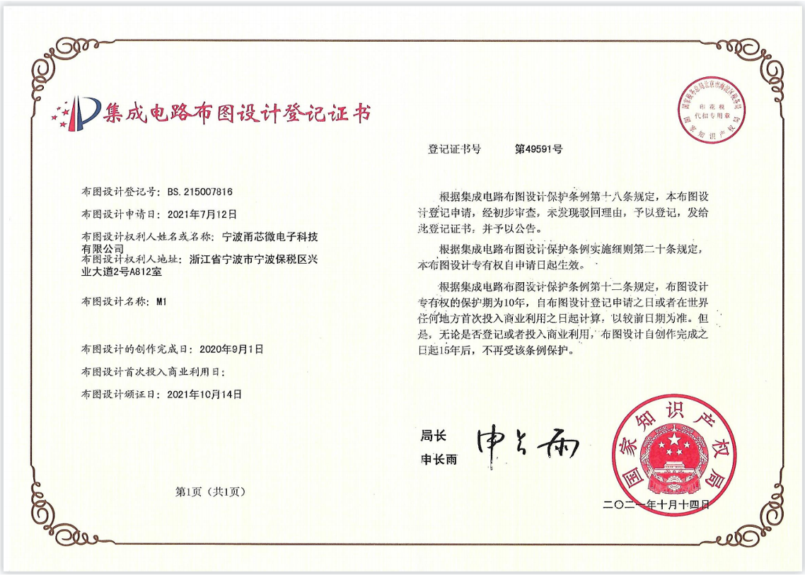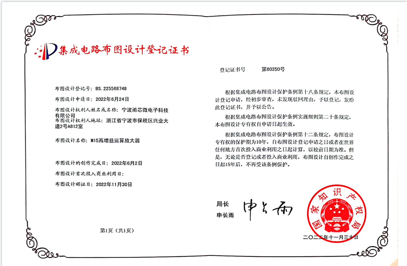 公司现有集成电路布图专利23项(M1-M7;YX2101-YX2104;M14-M24);发明专利1项。